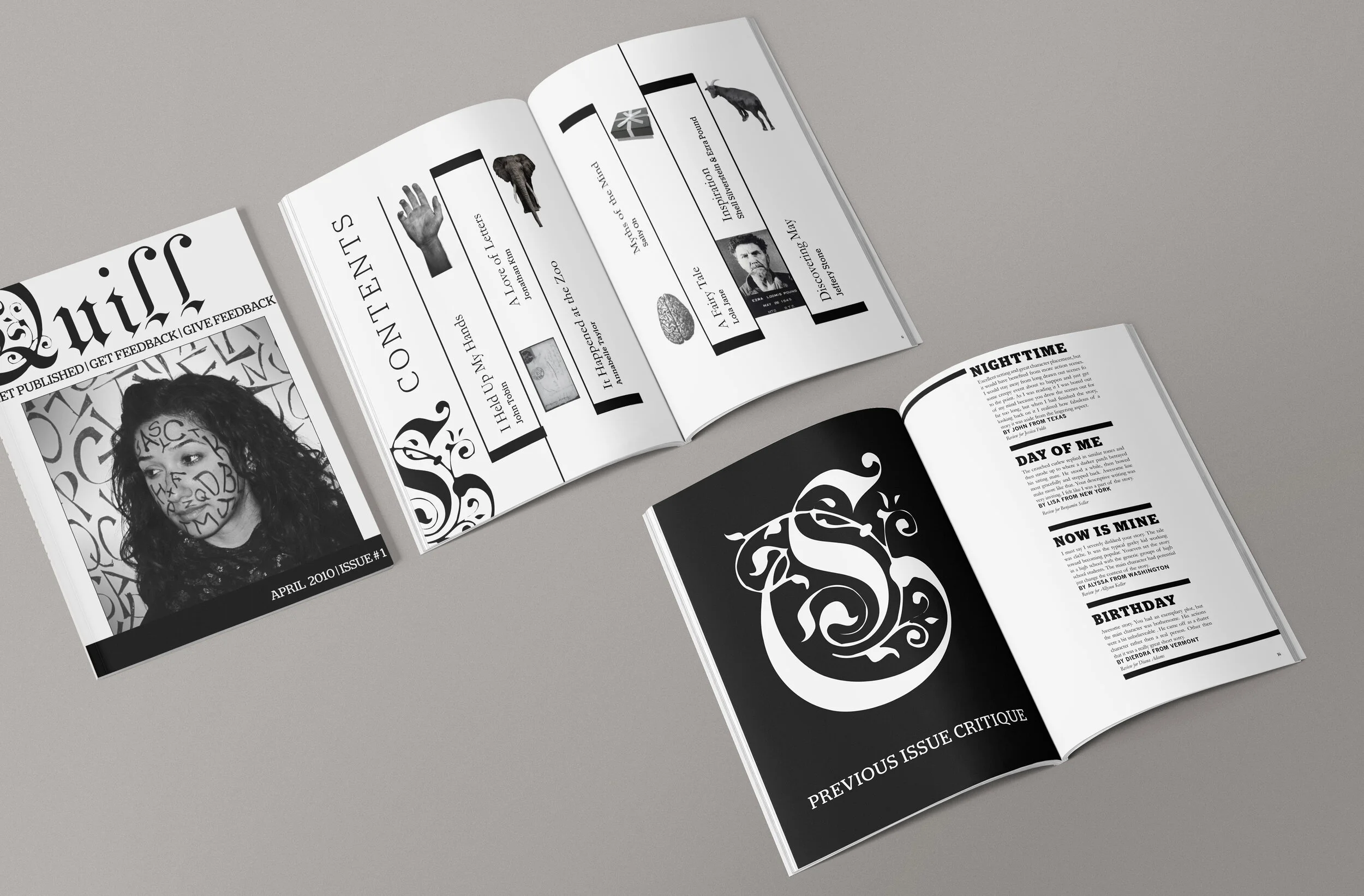 This is a magazine for budding writers that I designed and created content for. Each issue features budding writers work. There are comment cards and links to a website at the end where readers can give feedback to the featured writers. That feedback is published in the next issue.